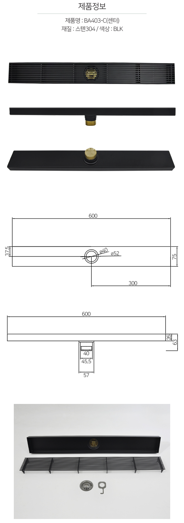 KB BA403-C(BLK) L.600